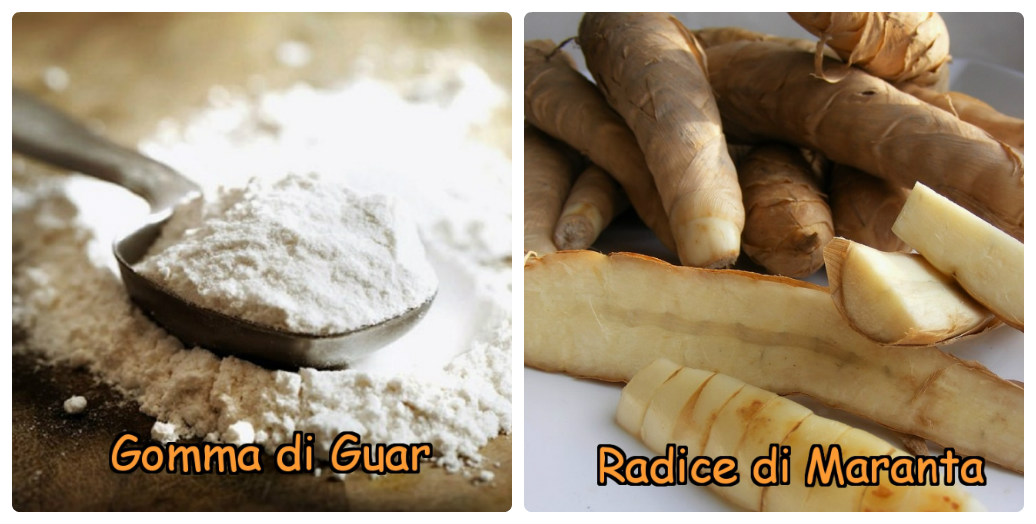 - Gomma di Guar: è ricavata dalla macinazione dei semi di una pianta erbacea annuale di origine indiana. Il processo di lavorazione dei baccelli dà vita a una sorta di farina bianca, la cosiddetta Gomma. Viene utilizzata nell’industria perché è capace di assordire notevoli quantità di acqua trasformandola in una soluzione vischiosa. Questa caratteristica ne fa un ottimo agente addensante: il suo potere gelificante è 6 volte superiore rispetto a quello della colla di pesce. Per cui, se è previsto ad esempio un cucchiaio di gelatina nella vostra ricetta, utilizzate mezzo cucchiaino di gomma di guar. Importante mescolare bene, perché questo prodotto tende a creare dei grumi.